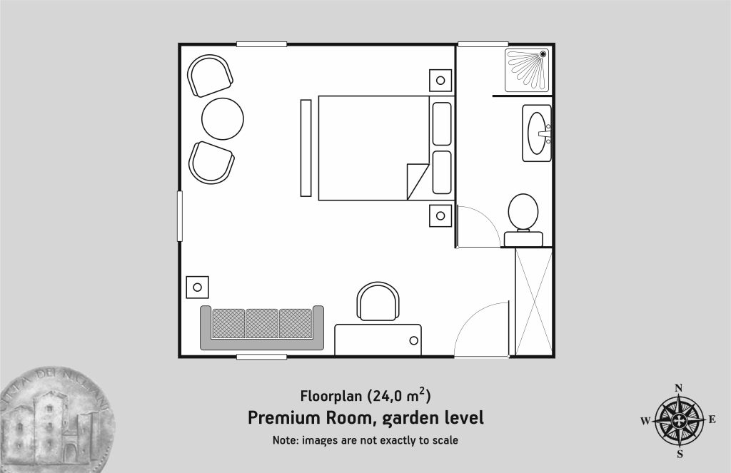 Spacious room having been traditionally constructed and harmonized with the environment and neatly lay out. They are decorated with works by Miltos Pantelias, while the round table and classic chairs are there to offer you moments of calm, relaxation and meditation. The bathroom is spacious and comfortable, tended to every detail to offer a relaxing experience. This room is located in the Ground floor providing you with direct access to the hotel’s patio.